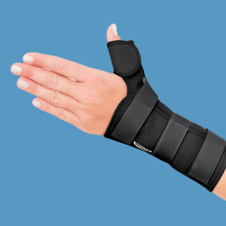 Fraturas, tenossinovite de ‘Quervain’, entorses, contusões, fraturas, artroses e reeducação articular na artrite reumatóide do polegar, imobilização isolada do polegar .